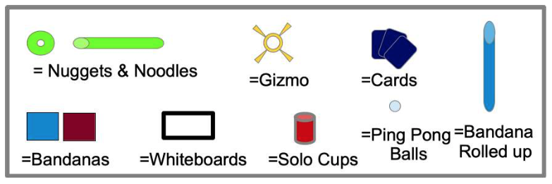 Object 7: Pool Noodles and Nuggets (Buy 8 pool noodles - 2 noodles in 4 different colors. Take one pool noodle in each of four colors and cut in half. The others cut into 1.5” slices.)