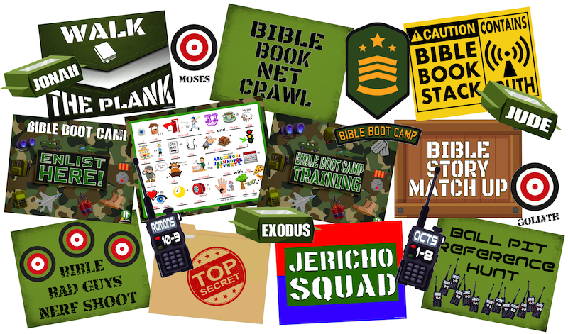 If you are looking for an Army-themed series, Bible Boot Camp 4-Week Series provides you with the drills to train and equip kids for Spiritual Battle! Bible Boot Camp Training Day can be a fun intro to the 4-week series!
