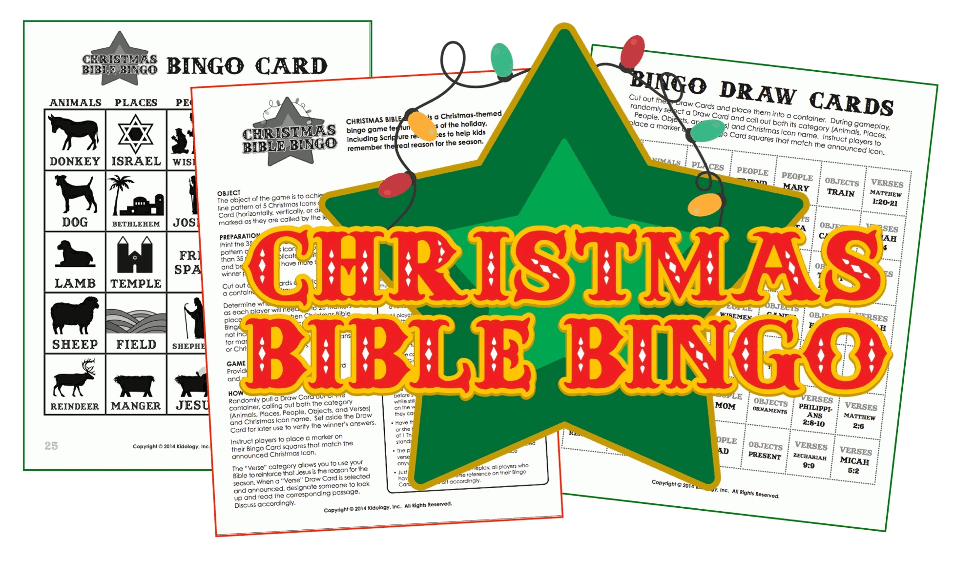 Ideal for kids who know the Christmas story, as well as those who don't, these fully reproducible sheets are ready for your printer. Build anticipation for Christmas while also helping remind kids of what Christmas is really all about. In addition to the classic game of bingo, the Kidology bingo game incorporates scripture squares so there is Biblical learning along the way!