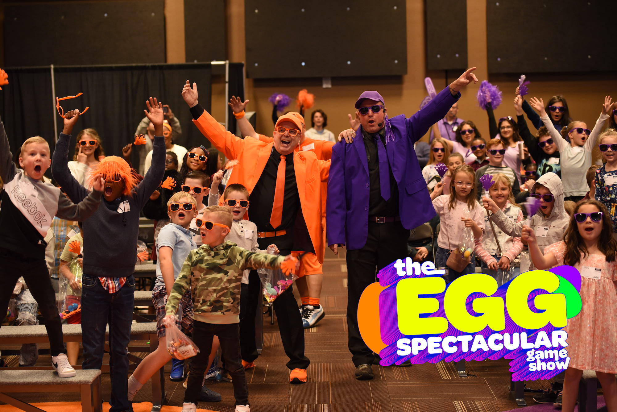 The EGGspectacular Game Show is a high energy game show for elementary kids held on Palm Sunday. It features super fun egg-themed challenges attempted by kids selected from the audience along with audience participation.