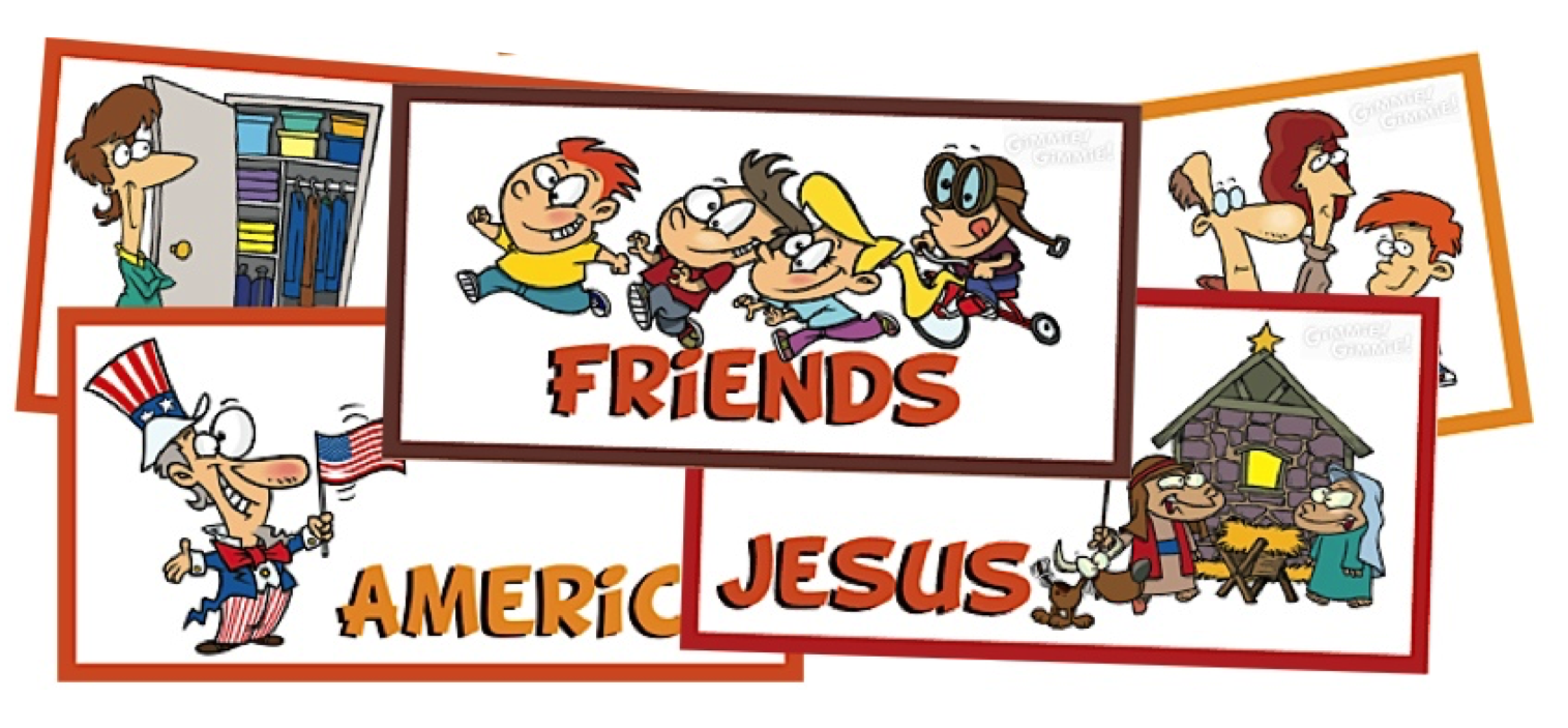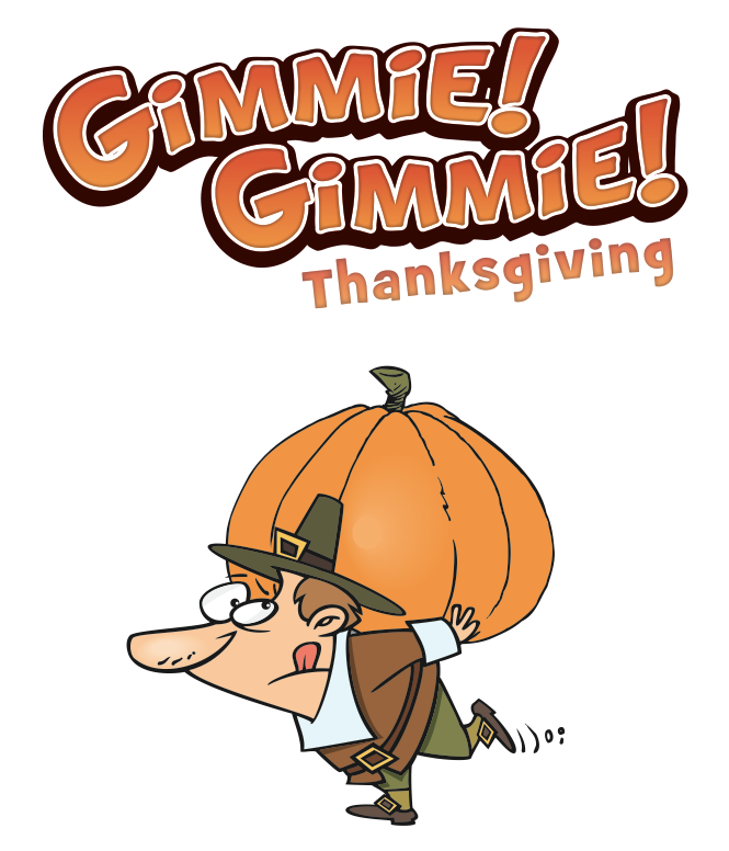 Gimmie! Gimmie! Thanksgiving is a fast-paced, holiday trading game that illustrates thankfulness vs. selfishness. Ideal for just a few kids as well as large groups, the object is to collect a complete set of Thanksgiving cards, while avoiding the greedy Gimmie! Gimmie!