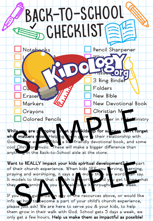 Recruiting is a never-ending job! That's why it's important to be fresh and original in how we approach prospective volunteers. The invitation to serve children must be creative and positive, but consistent! What's on YOUR back-to-school checklist? Sure, kids will need pens, pencils, crayons, calculators, etc. But what about their spiritual growth?