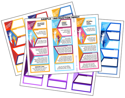 Recruiting is a never-ending job! That's why it's important to be fresh and original in how we approach prospective volunteers. The invitation to serve children must be creative and positive, but consistent! One of the keys to easy recruiting is having easily accessible job descriptions for all of your volunteer roles. We've made it easy with these customizable templates in a handy size!