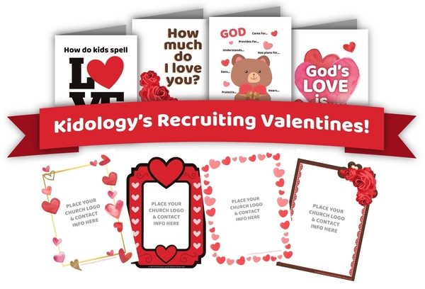 Recruiting is a never-ending job! That's why it's important to be fresh and original in how we approach prospective volunteers. The invitation to serve children must be creative and positive, but consistent! Send home Valentine's that invite folks to join in sharing God's love with children. Four completely different styles are provided.