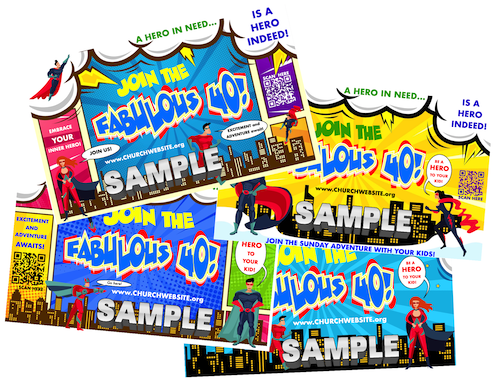 Pass out these Superhero themed flyers over four Sundays or just print a variety so every parent gets a different one at pick up. However, keep in mind - flyers are only effective in providing a way to give people action steps. Personal invitation will always be the most effective means. For greatest impact, use these flyers along with a matching themed page on your church website.