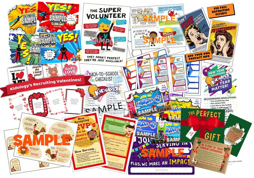 To help you retain your current volunteers and recruit new ones, Kidology has created a collection of Volunteer Recruiting Tools available for you to download, many themed for Seasons and Holidays.