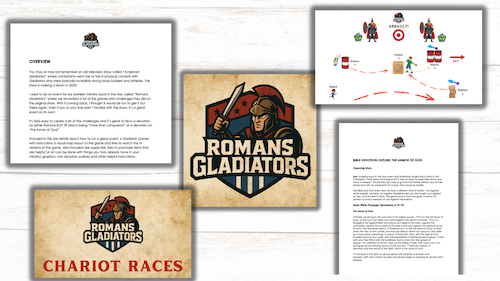 Romans Gladiators is a play on the old TV show American Gladiators which is making a comeback in 2025! Romans Gladiators recreates many of the games the show used to do. Kids will divide up into teams and go to battle in the arena against your Roman Gladiators! It's a high-energy fun-filled event that's great for outreach, Father-Son Night, or even Family Night!