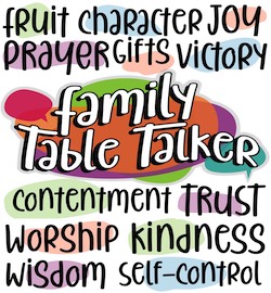 These Table Talkers are designed to make it easier for families to connect around the meal table for meaningful conversation around a monthly theme. Every Family Table Talker includes a theme, a motto for the month, a victory verse, some goofy games, live chat discussion starters, a family challenge, and more!