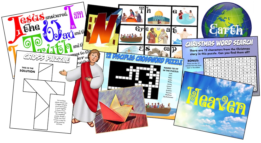 Once they have all nine puzzle pieces, they will complete the puzzle, tape it together, and turn it over to discover the phrase that will allow them to "ESCAPE" and win the game! That same phrase contains the secret to escaping the consequences of sin and entering heaven! (John 14:6)